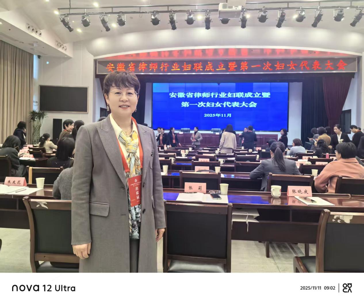 20251111上午,安徽省律师行业妇联成立暨第一次妇女代表大会在合肥召开省司法厅党委书记、厅长罗建华,省妇联党组成员、副主席莫丽克出席会议并讲话,省司法厅党委委员、副厅长、一级巡视员、省律师行业党委书记张国安主持开幕式。省委社会工作部非公党建处、省妇联组织联络部、省司法厅妇委会负责同志出席会议。83名会议代表、18名特邀代表参加会议,安徽天贵律师事务所张月芝律师作为池州市唯一一位律师代表,参加本次会议
