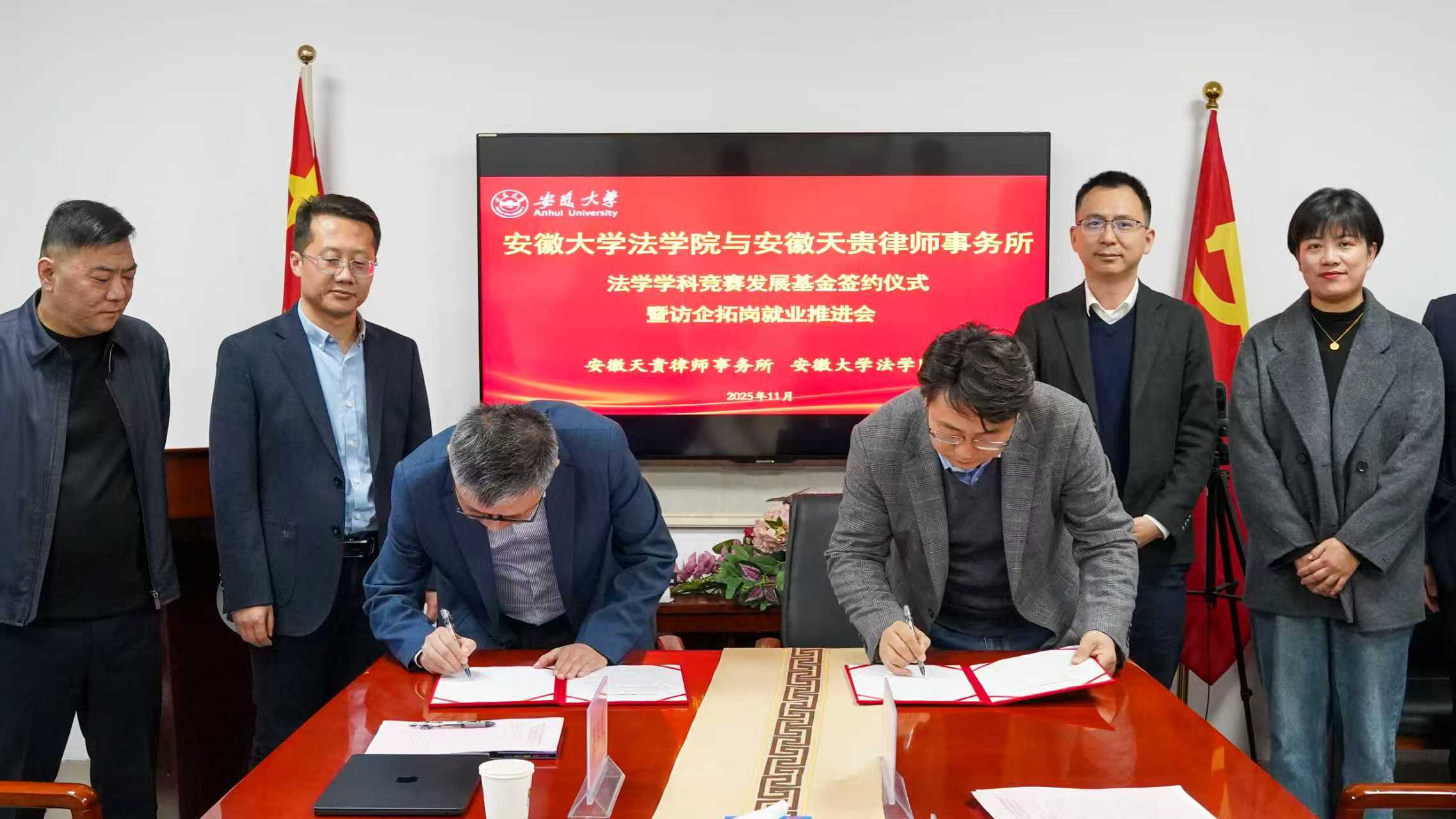 校企双向奔赴 共育法治英才——安徽大学法学院与安徽天贵律师事务所签约设立法学学科竞赛发展基金